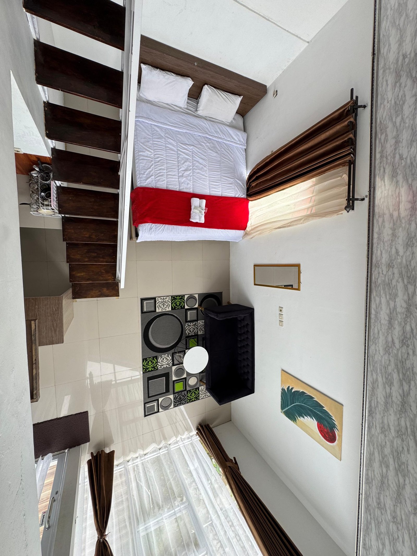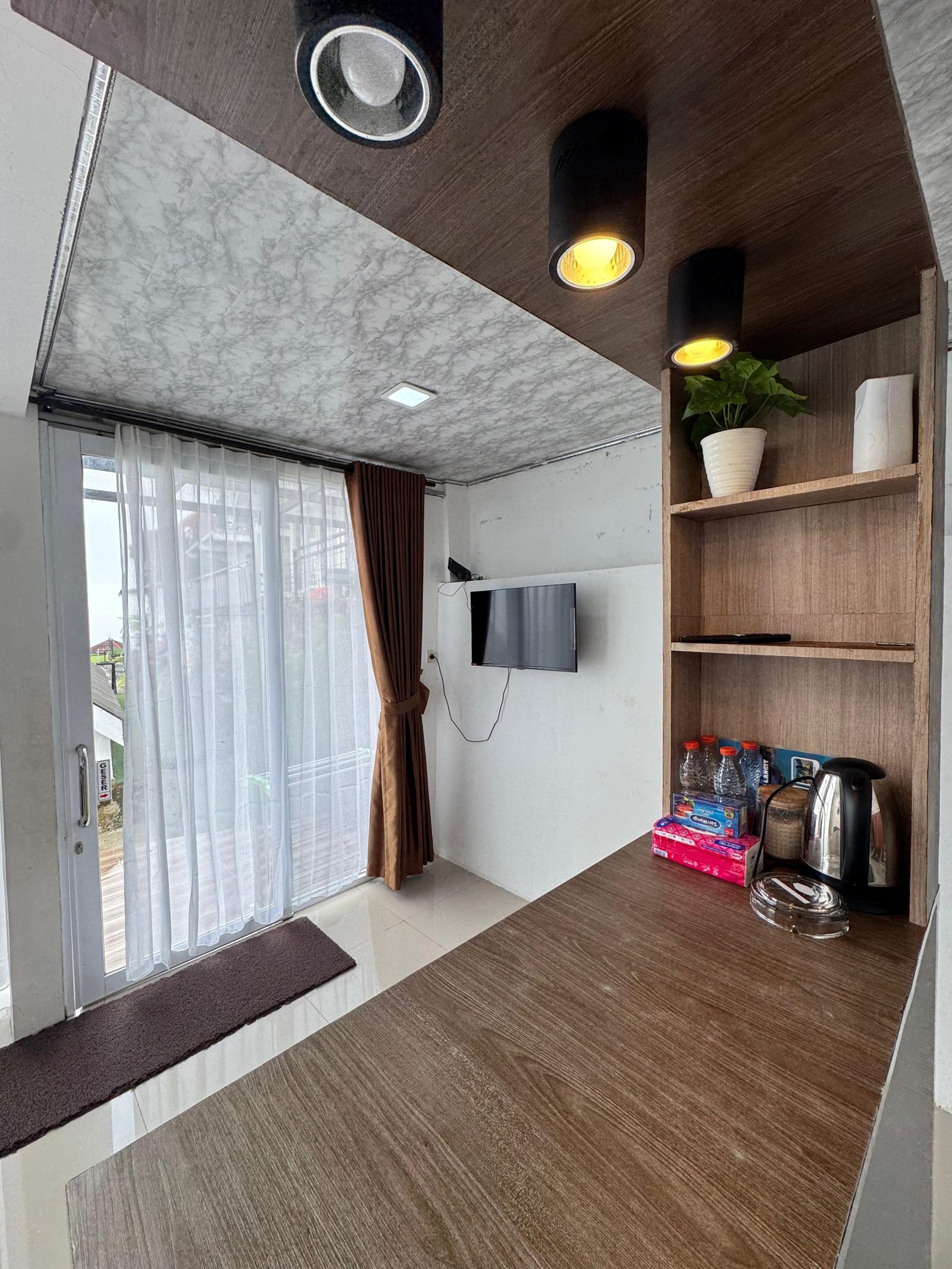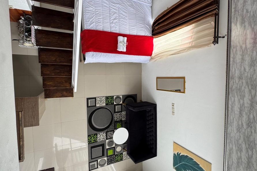 - Amenities: 1 Kamar Mandi, 2 Handuk, Air Hangat, Android Tv 32 inc, free wi-fi, Mini Dapur, , Teh & Kopi, terrace, Welcome Drink